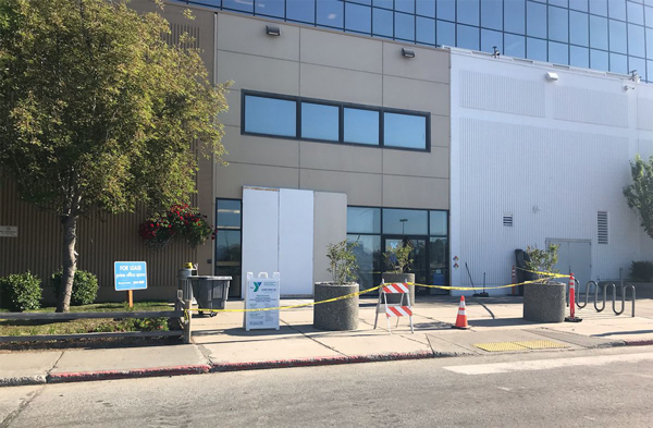 من الواضح في هذه الصورة أنه يوجد أمام مدخل مركز التسوق العديد من الأعمدة الأسمنتية التي يمكنها ، إلى حد ما ، أداء وظيفة الحماية.